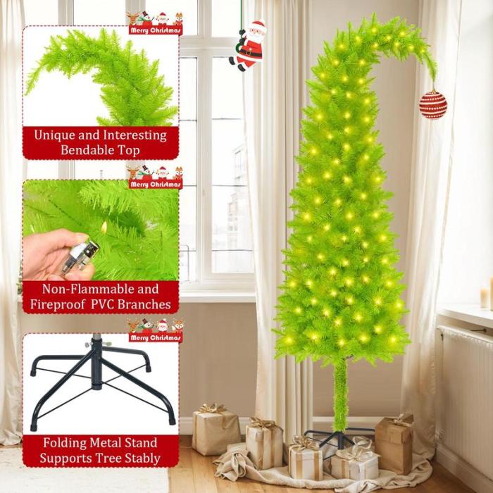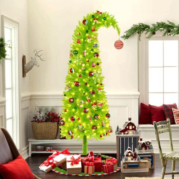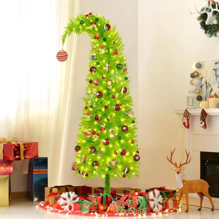 Bring a touch of playful holiday magic into your home with this unique Whimsical Grinch-Style Christmas Tree! Designed with a curved, bendable top, this tree adds a fun and quirky twist to your festive décor — perfect for anyone who loves a cheerful and creative Christmas vibe.